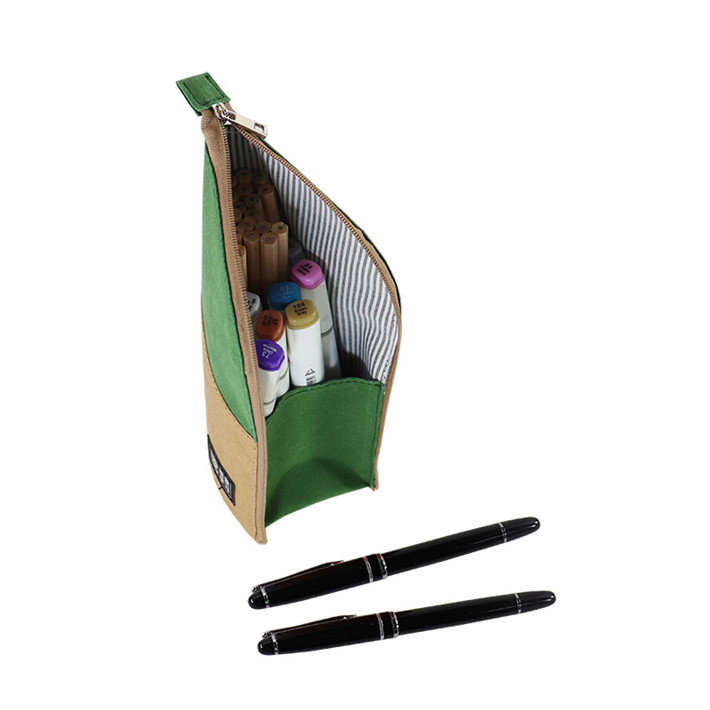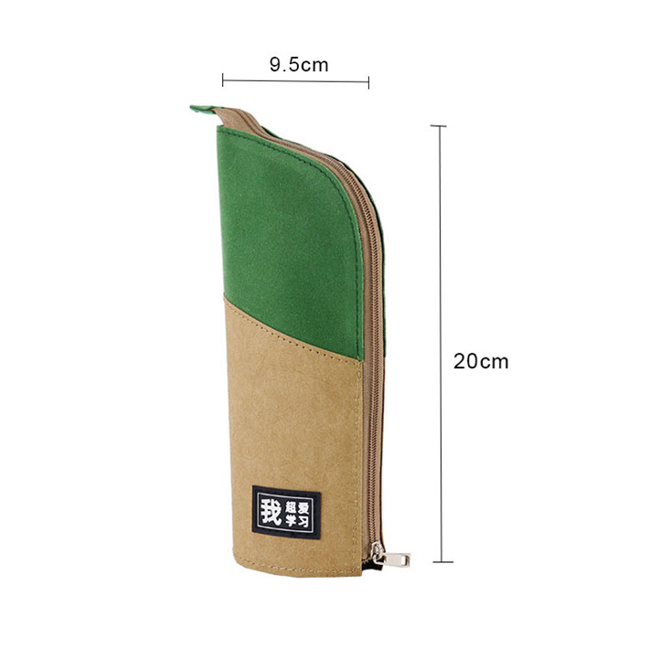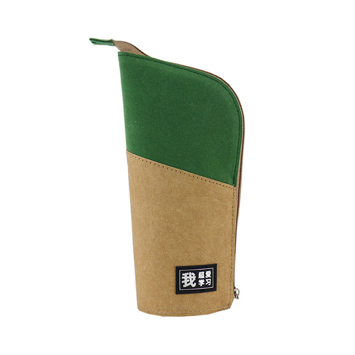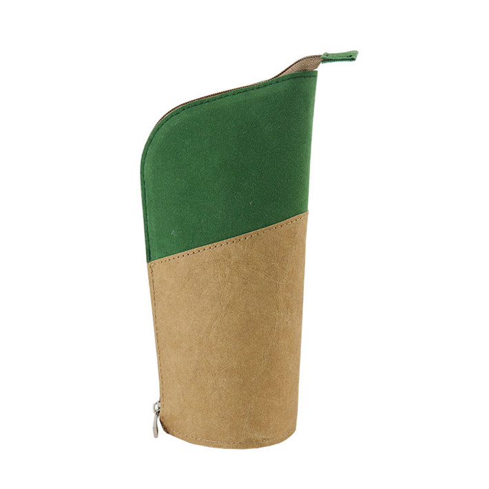 新款極簡(jiǎn)主義站立筆筒多功能進(jìn)口牛皮紙拼接桃皮絨拉鏈包定制