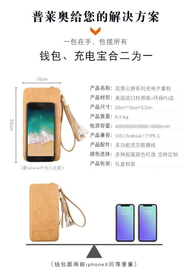 這款充電錢包比較適合女士使用,而其娛樂功能和充電功能成為它的內(nèi)核所在,并且在還可以做成無線充電功能。