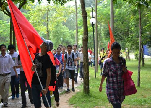 9:30蓮花山下--帶上笑容我們踏上登山的路,一路上盡情呼吸著在都市  久違的芳草氣息,森榮的旗幟在蓮花山上飄揚,森榮人的笑聲在蓮花山上流動。此刻我只想到了一句歌“我們的隊伍像太陽”