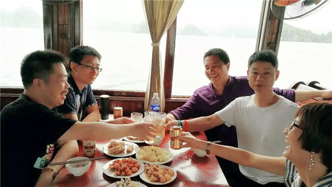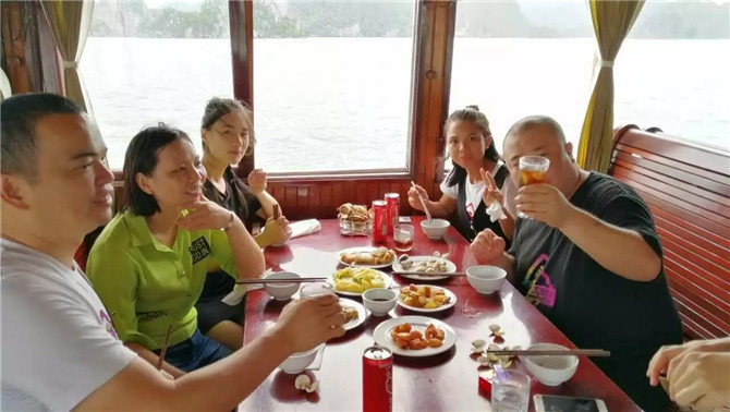 16日天氣轉(zhuǎn)晴,阿松說他們信奉燒香拜佛,前天晚上燒香至凌晨4點(diǎn)祈禱天氣晴朗讓我們?nèi)ンw驗(yàn)下龍灣的風(fēng)采,果然皇天不負(fù)有心人。于是18羅漢愉快地開啟了早餐時刻:越南的牛肉粉真的巨好吃,每個人至少只吃了3碗而已。