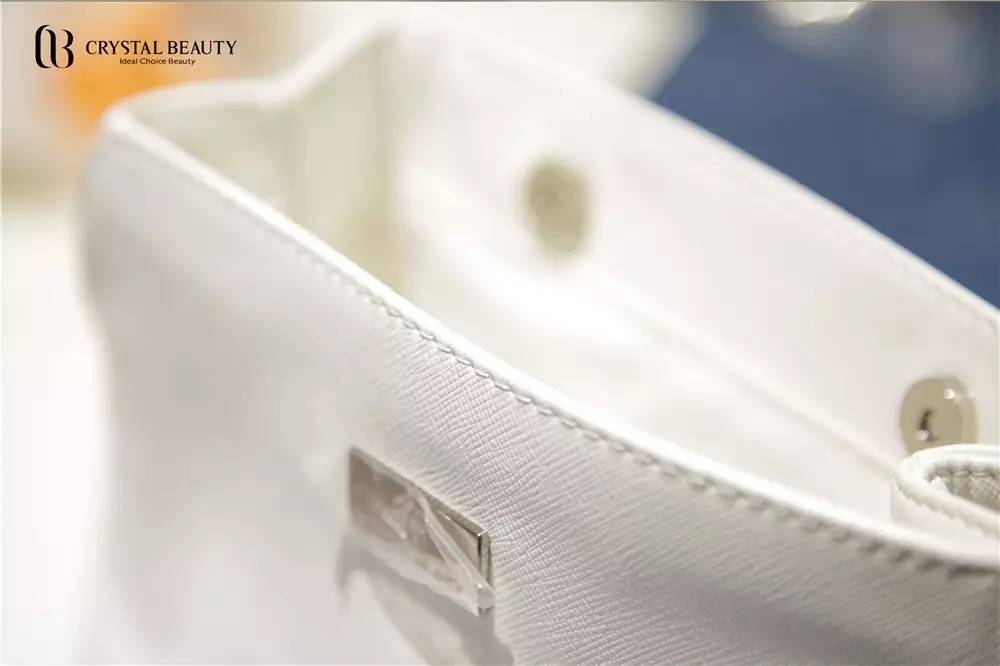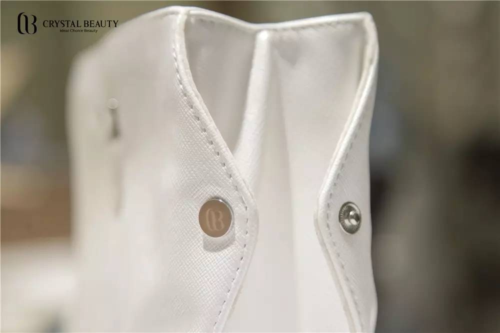 CB愛(ài)斯貝綺化妝包,沒(méi)有華麗的妝飾,純白的外觀搭配了4個(gè)銀色金屬扣和一個(gè)銀色CB LOGO,簡(jiǎn)約大氣,又如美麗般一塵不染。