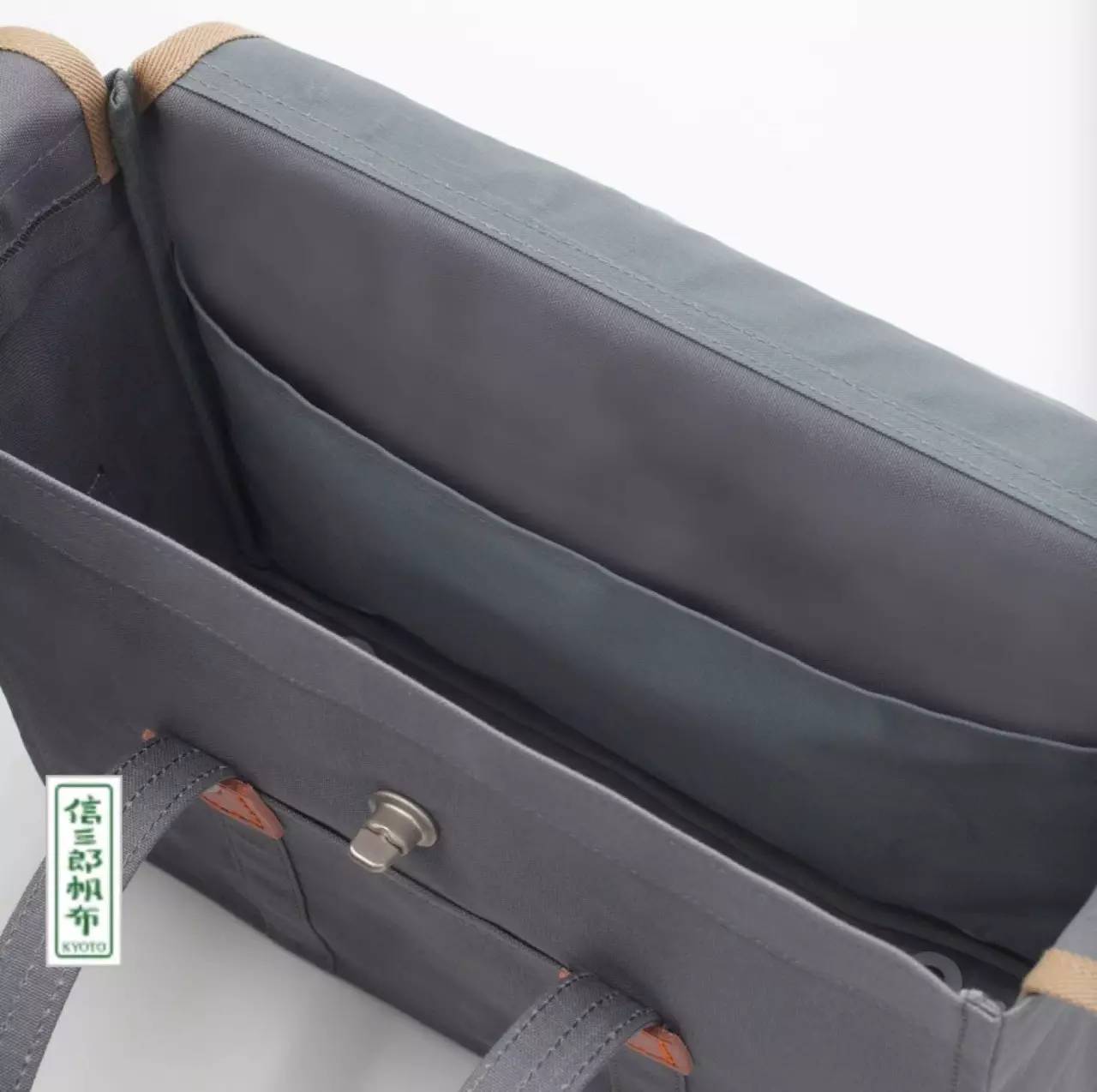 大熱款式是這個(gè)正面寫著“布包”的系列。包在日文里包寫作“鞄”。據(jù)說,這個(gè)字是明治時(shí)代東京一家皮包店設(shè)計(jì)的。信三郎就想,這個(gè)“革”字不適合他的帆布包,那他是不是也可以造一個(gè)字出來做品牌標(biāo)志呢?自此“布包”系列就誕生了。