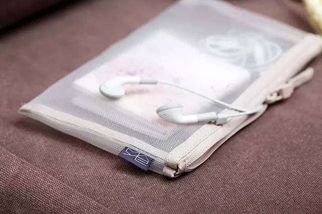 網(wǎng)格袋,可以裝一些小物件:證件、耳機(jī)、零錢等等,而且是透視的,裝了什么,一目了然。